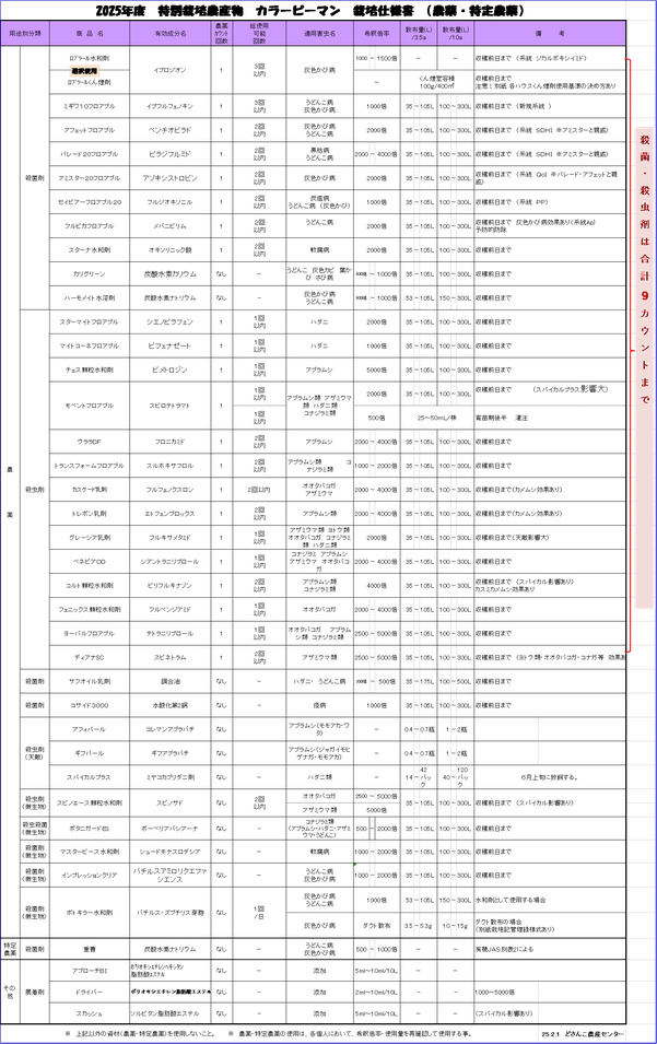 馬鈴薯(特別栽培) 栽培仕様書(農薬等)